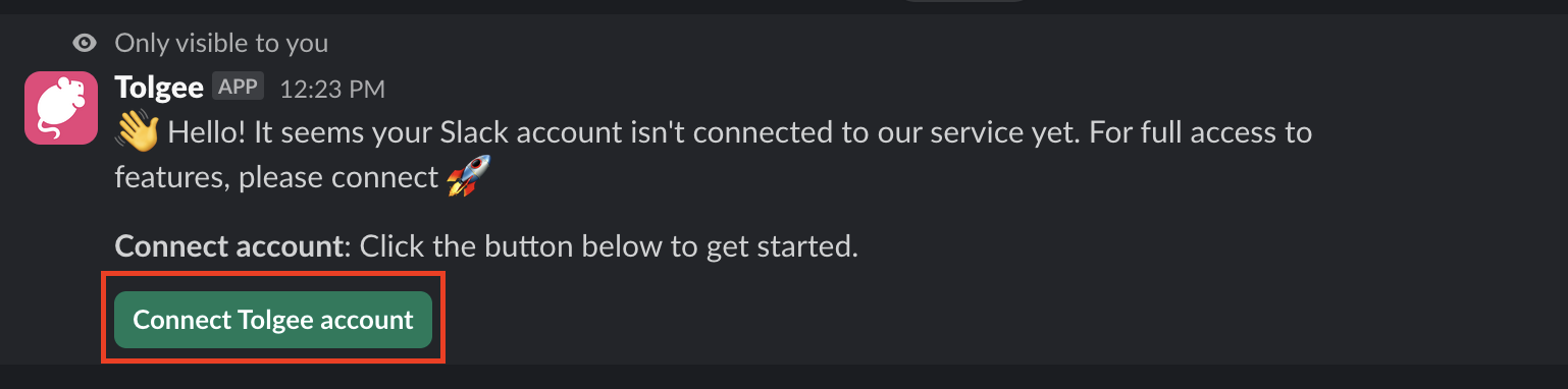 Now you need to link your Tolgee account with your Slack account. We need this to identify you and provide you with the necessary permissions. Here is how you can do that: